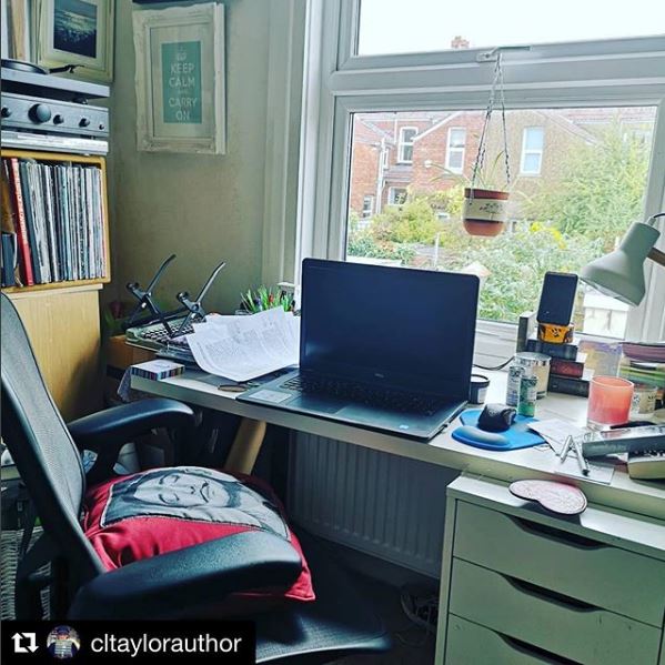 “I have three desks. One empty for paperwork, one for the internet and email, and one for the writing computer.”